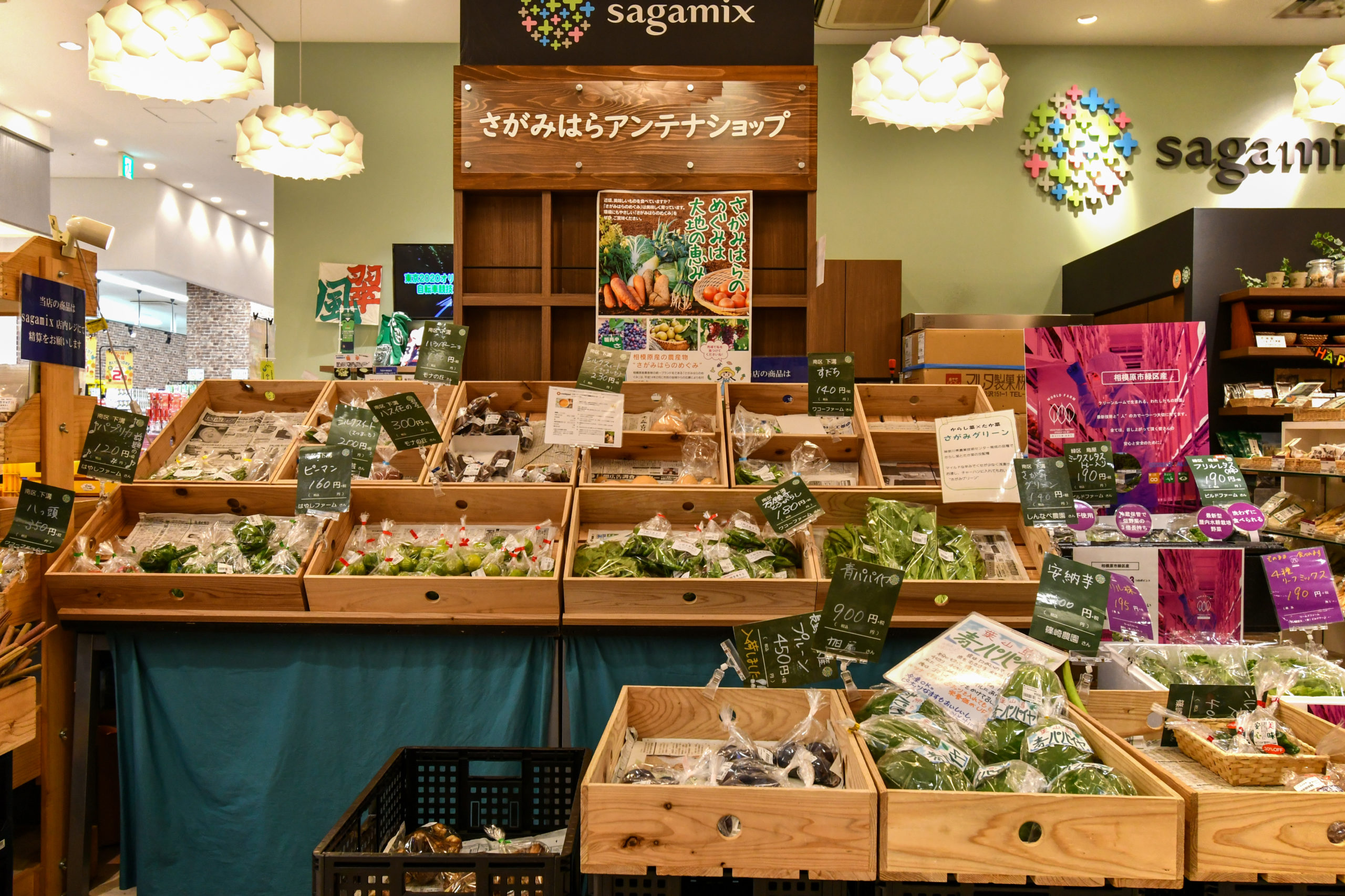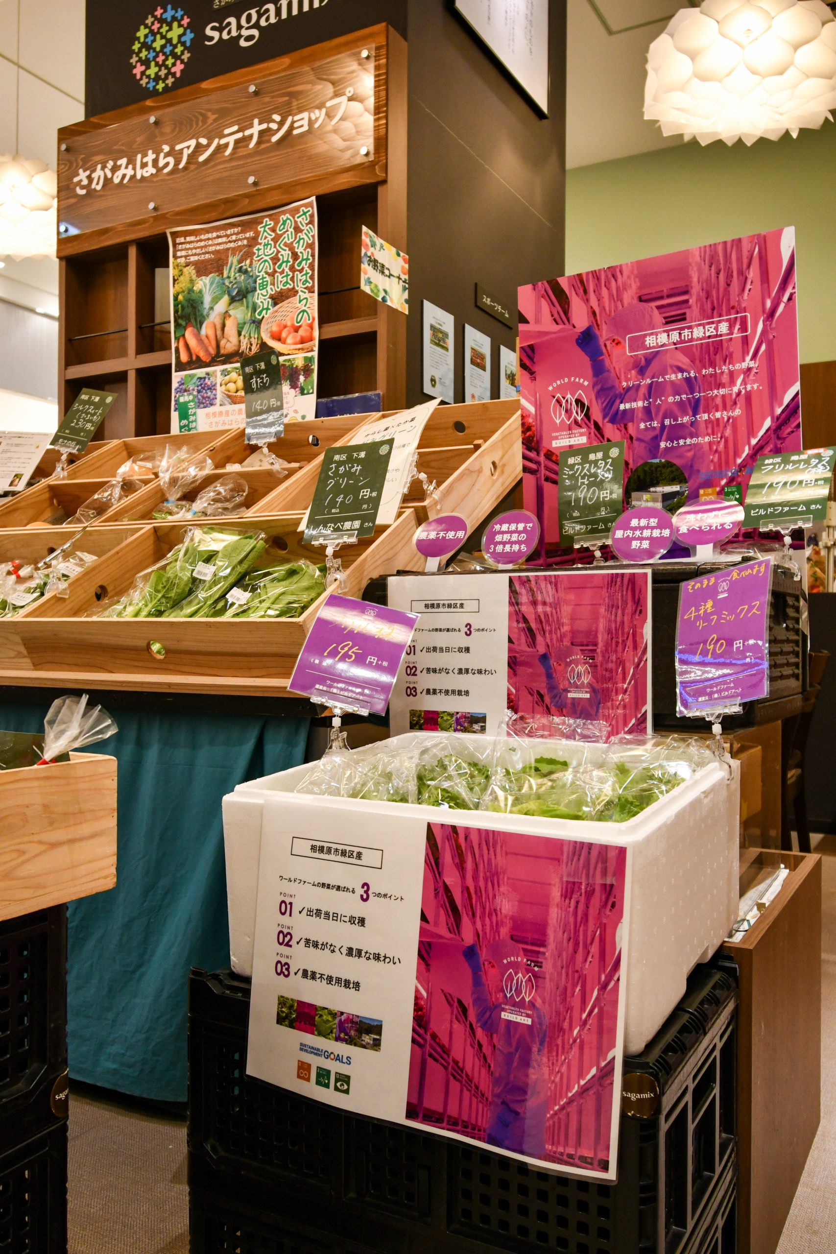 相模原市観光協会が運営する、相模原にゆかりのある品々が取り揃えられているアンテナショップ「sagamix」で、ビルドアートの運営するワールドファームの野菜の販売が開始しました。
