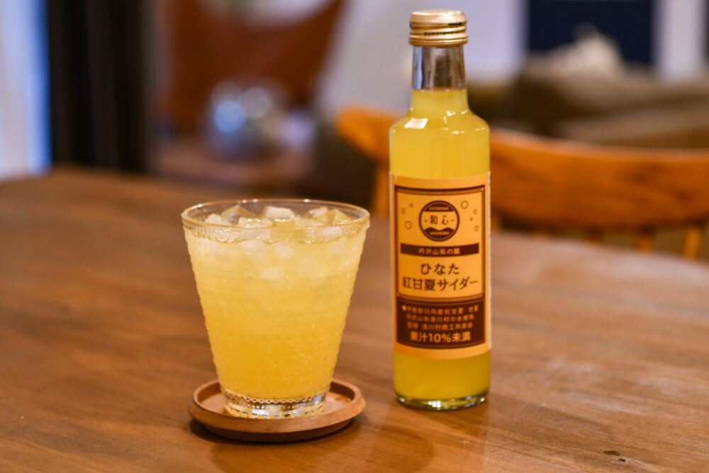 「清川お米白サイダー」「清川茶里サイダー」「里柚子地サイダー」「ひなた紅甘夏サイダー」