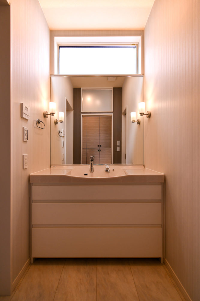 洗面化粧台も広々としていてとてもお洒落で使いやすい仕様になっています。