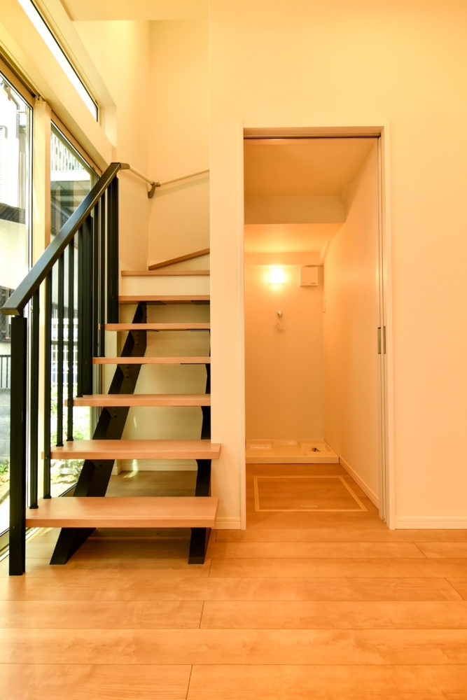 こちらの引き戸を引くと、洗濯機収納スペースが! 洗濯機をこのように収納するのは珍しいのではないでしょうか。是非参考にしたい収納術です。