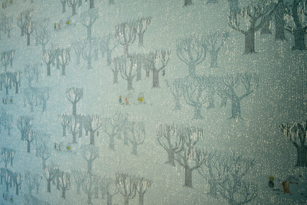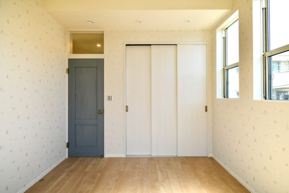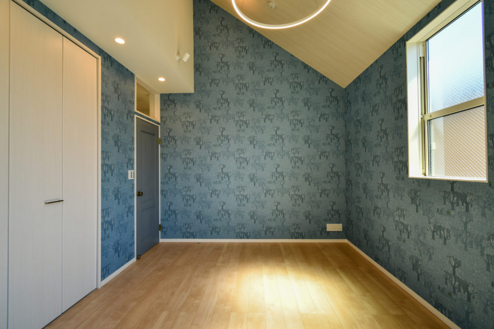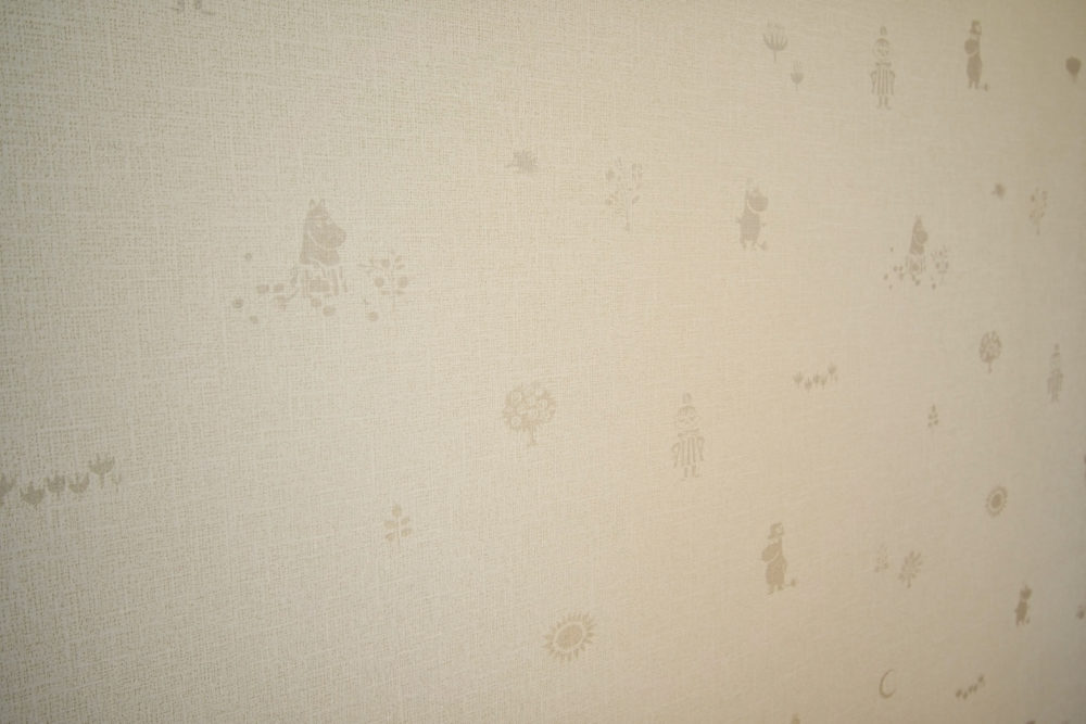 2Fの居室には、可愛い+おしゃれなムーミンのクロスを採用。絵柄が小さいので、ムーミンが良い感じにお部屋にマッチしています。
