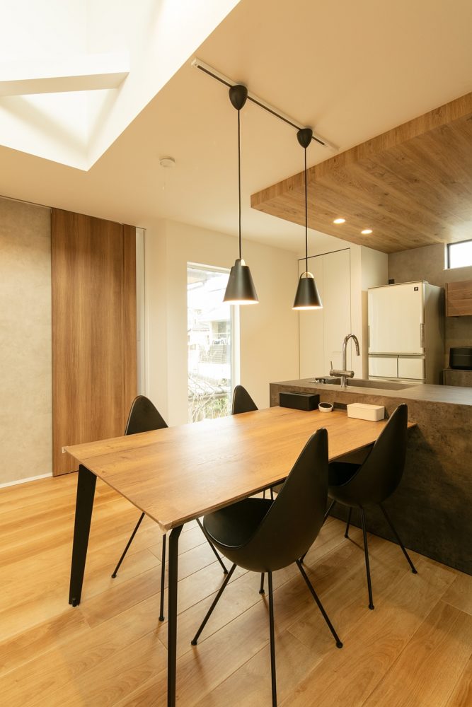 住宅密集地なのでプライバシー確保も大事なこちらの土地に、それをクリアしつつ開放的な生活ができるリビング空間をつくりあげました。