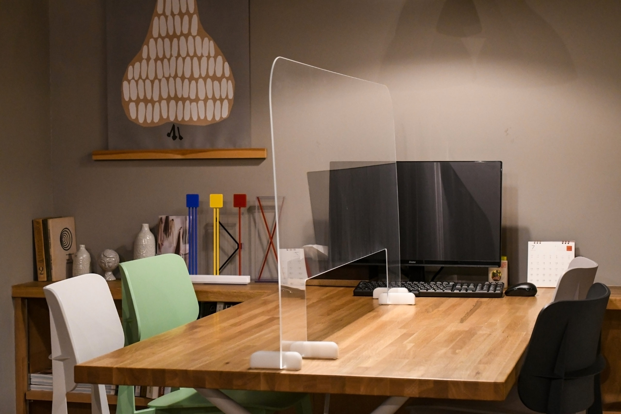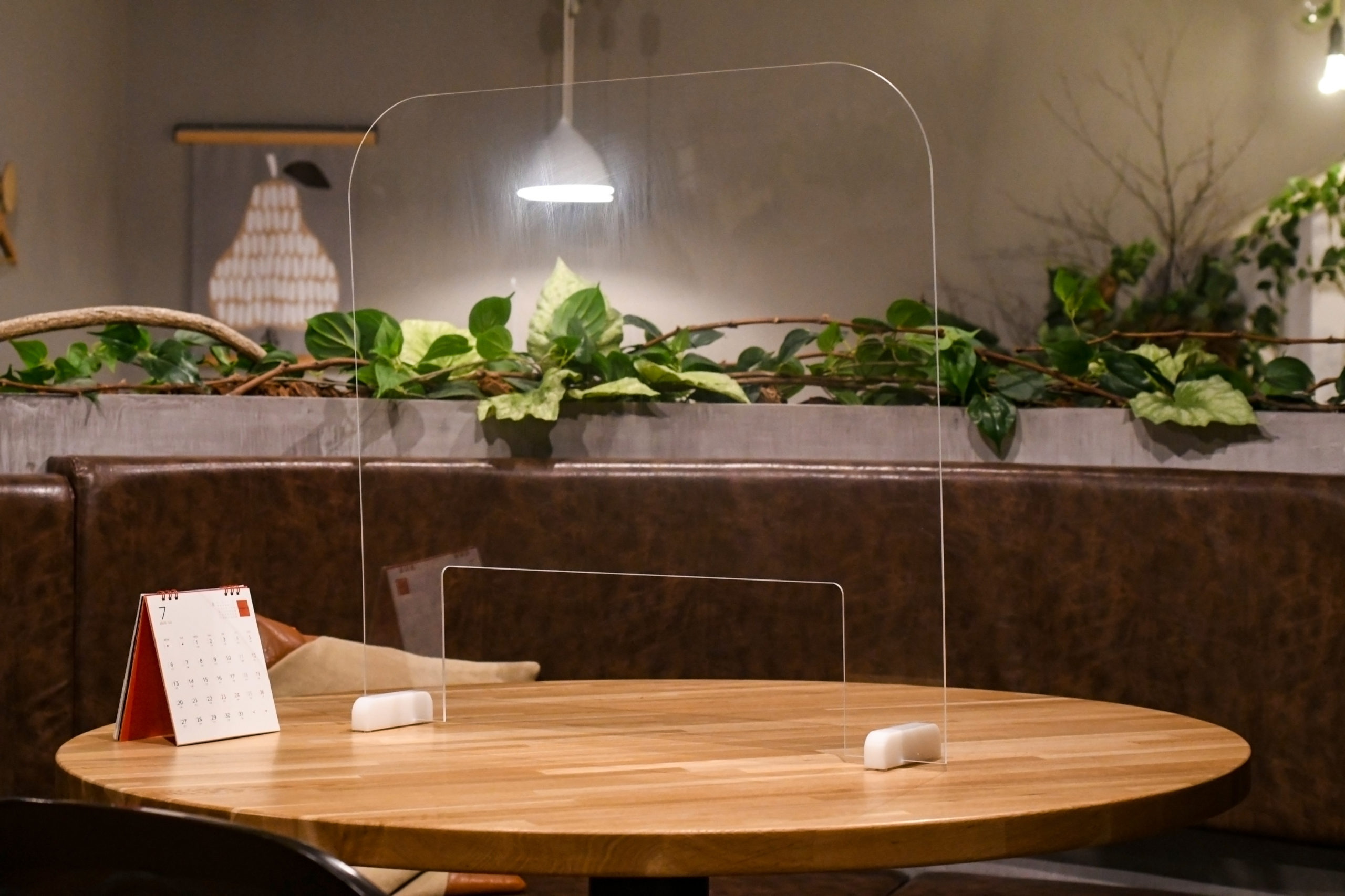 このように打ち合わせスペースには、アクリルのパーテーションを設けております。