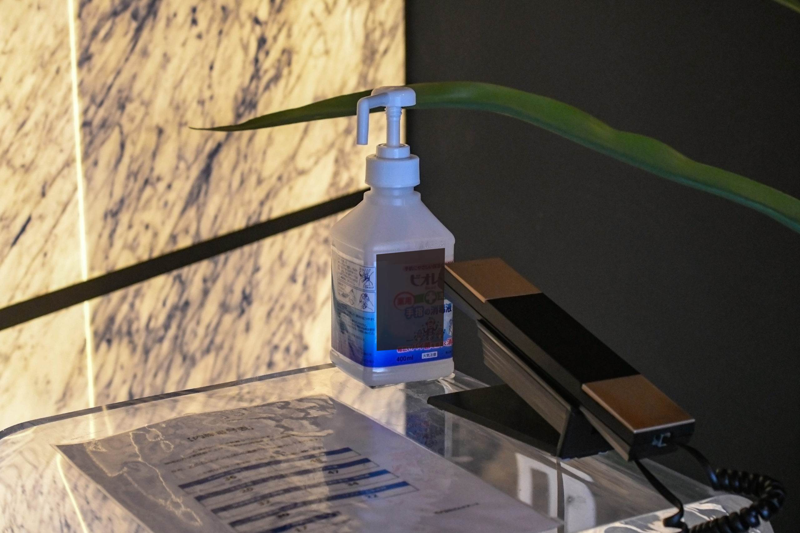 また、正面エントランスにはアルコール消毒を設置し、出入りする際はアルコール消毒をお願いしております。