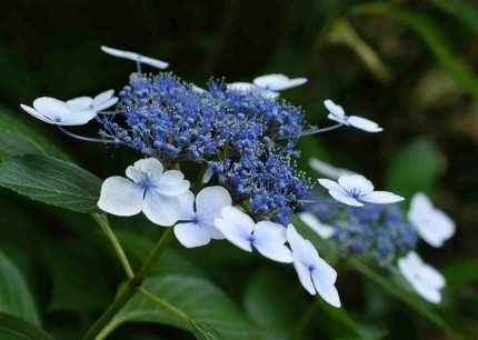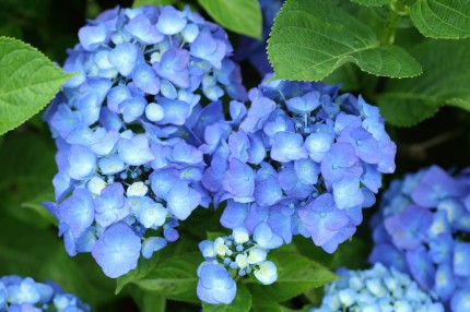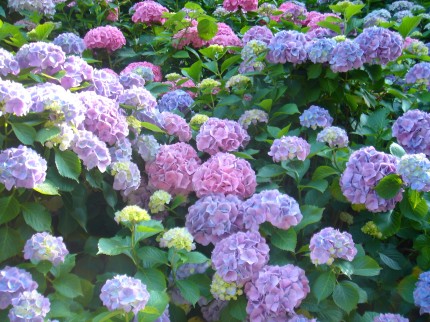 ホンアジサイ、ヤマアジサイ、ガクアジサイ等が咲き誇っていて