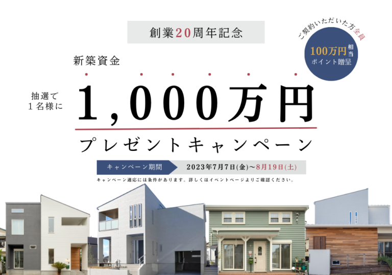 【特大イベント】~創業20周年記念ビッグキャンペーンを開催中~新築資金1000万円を手に入れるチャンスまだまだあります!!