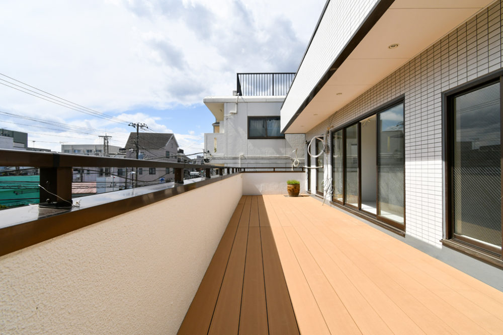 休日はセンターリビングから集合をかければ全員に声が届き、デッキで賑やかに食事を楽しめます。個々を尊重しながらも繋がりを持てる、大家族の理想のかたちが実現しました。