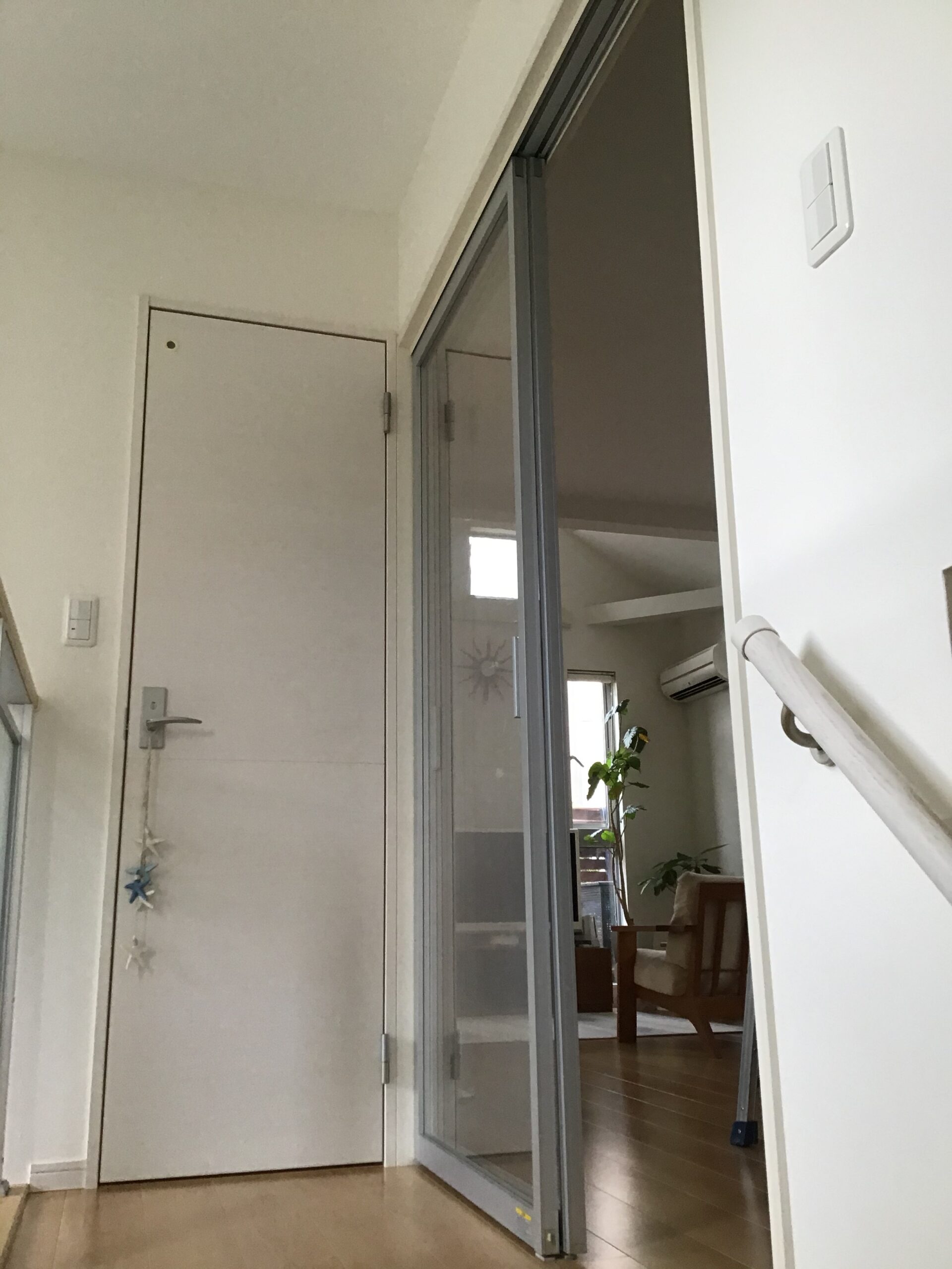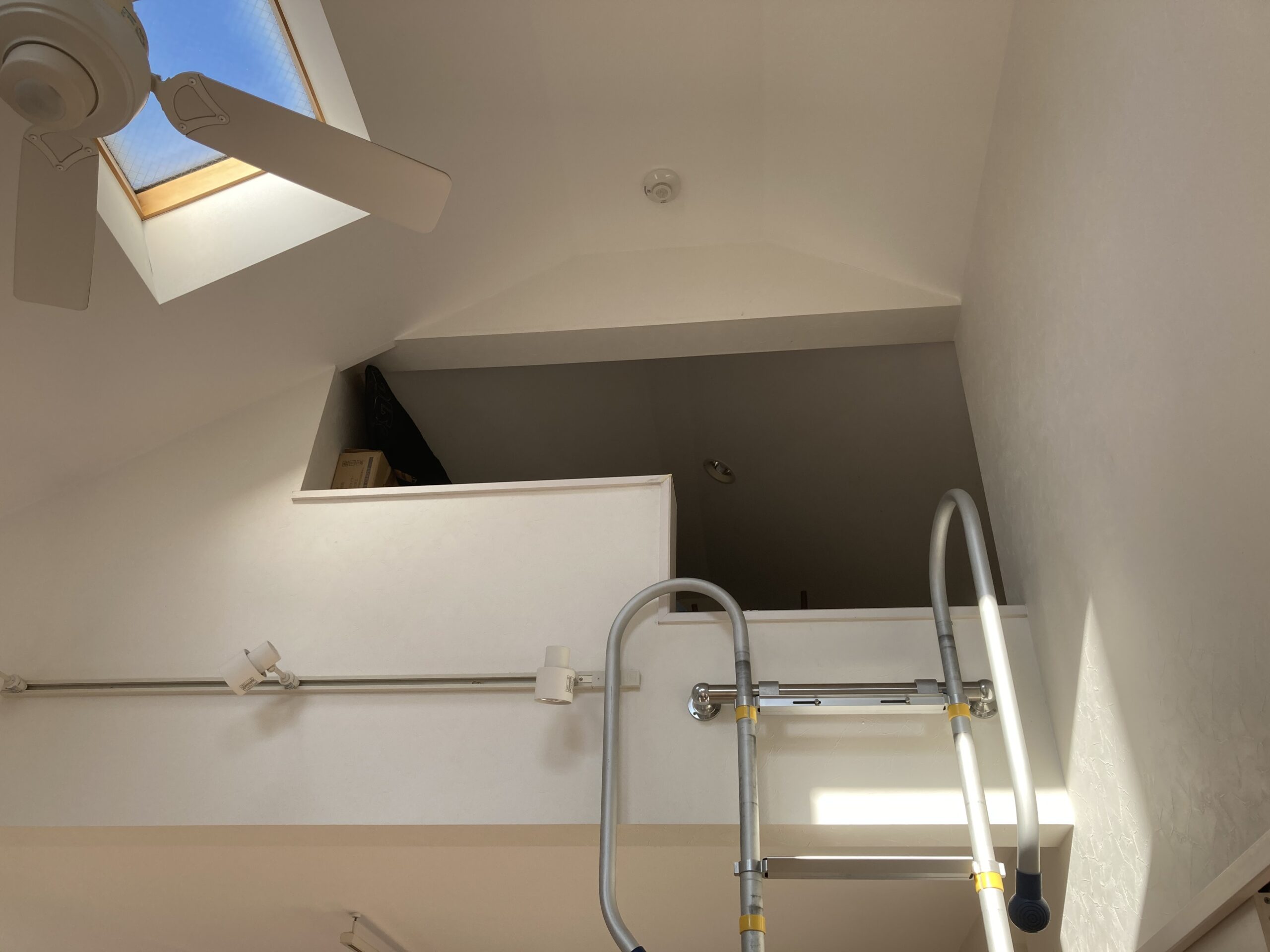 リビングと腰壁で繋がっていたロフトは、入口の向きを変え、リビング側を閉じることで収納した物が見えなくなり、リビングからの景色が気にならなくなりました。