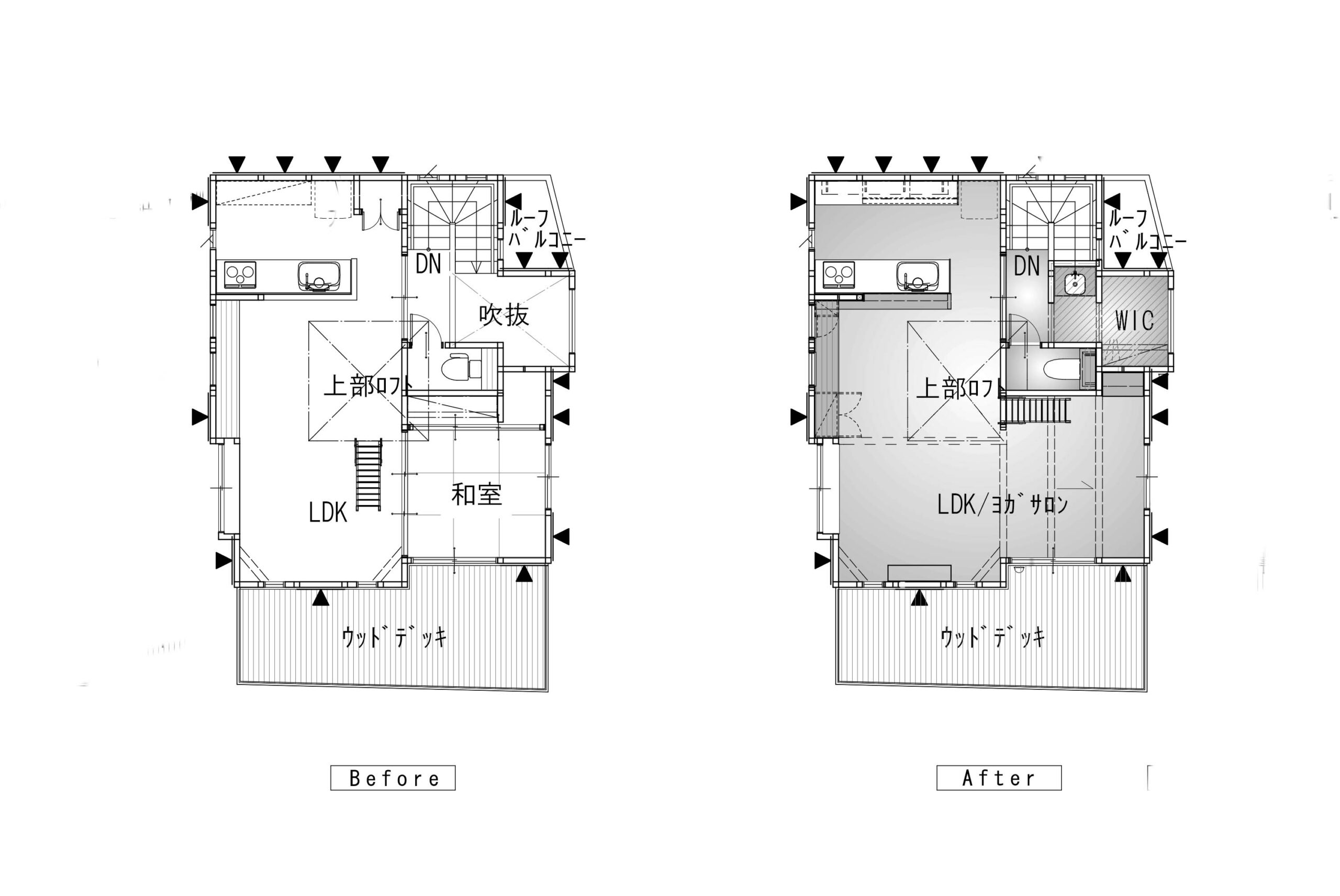- 工事種別:戸建(木造在来)2階改装工事(設備交換、床増設、勾配天井、内装工事など)