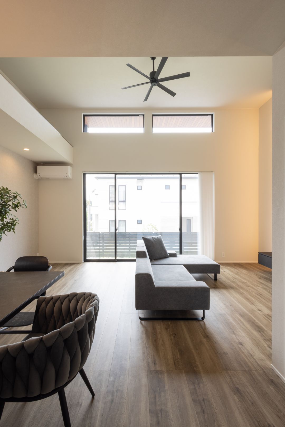 空間をより広く感じさせる高天井のリビングです