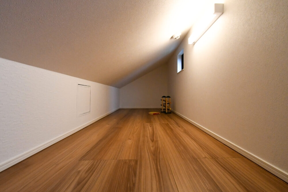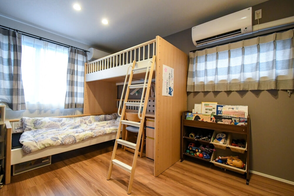 子ども部屋の奥にあるはしごを上った先にはロフトが。秘密基地のような空間に、子どもたちも大喜びです