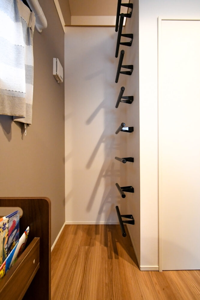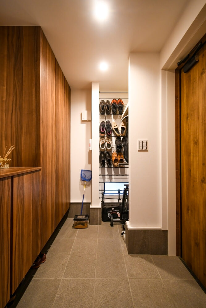 玄関には大きな収納のほかに、アイアンのシューズクロークを取り付けました