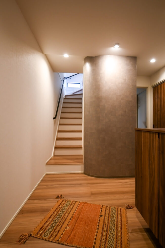 お子様2人とご夫婦の4人家族のK様。今回のこちらの物件は、賃貸と住居が一つの建物になっている賃貸併用住宅です。家づくりをするにあたって、一番こだわったところはずばり土地探しだそう。見晴らしがよく、開放感あるれる土地を見つけ、ビルドアートとの家づくりがスタートしました。空間をフル活用する為、階段の踊り場や配管スぺースに至るまでみっちりと使えるように設計。内装はシンプルでスタイリッシュなデザインにしたいということで、シックな木目のフローリングやドア、黒いアイアンの手摺りやレールなどをあしらった、主張しすぎないおしゃれで洗練された空間をご提案しました。また、戸建ての東面は賃貸部分の為窓が設置できません。その分西面と南面に窓をたくさん配置し、照明が無くても明るく家族の笑顔が絶えない素敵なお家になりました。