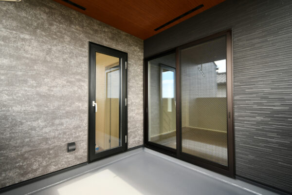 2階のバルコニー。広々とした正方形の空間で、お部屋からも廊下からも出入りできます。