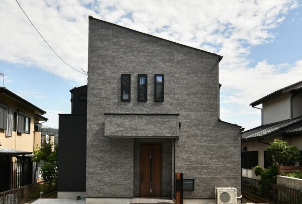 左側のせり出した部分は黒色の外壁で貼り分け、スッキリとしたかっこいい佇まいに。