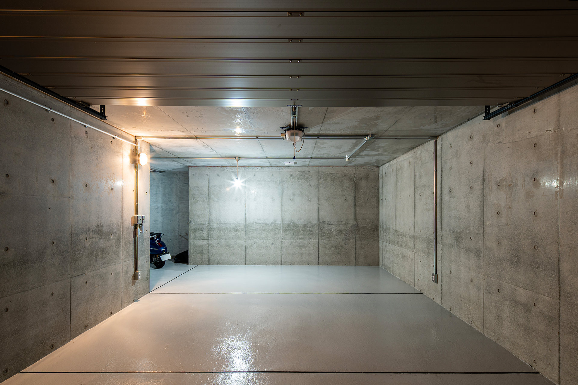 ガレージ側からは鍵もついており、出入りしない時にはしまっておけるので部屋が狭くなることもありません。