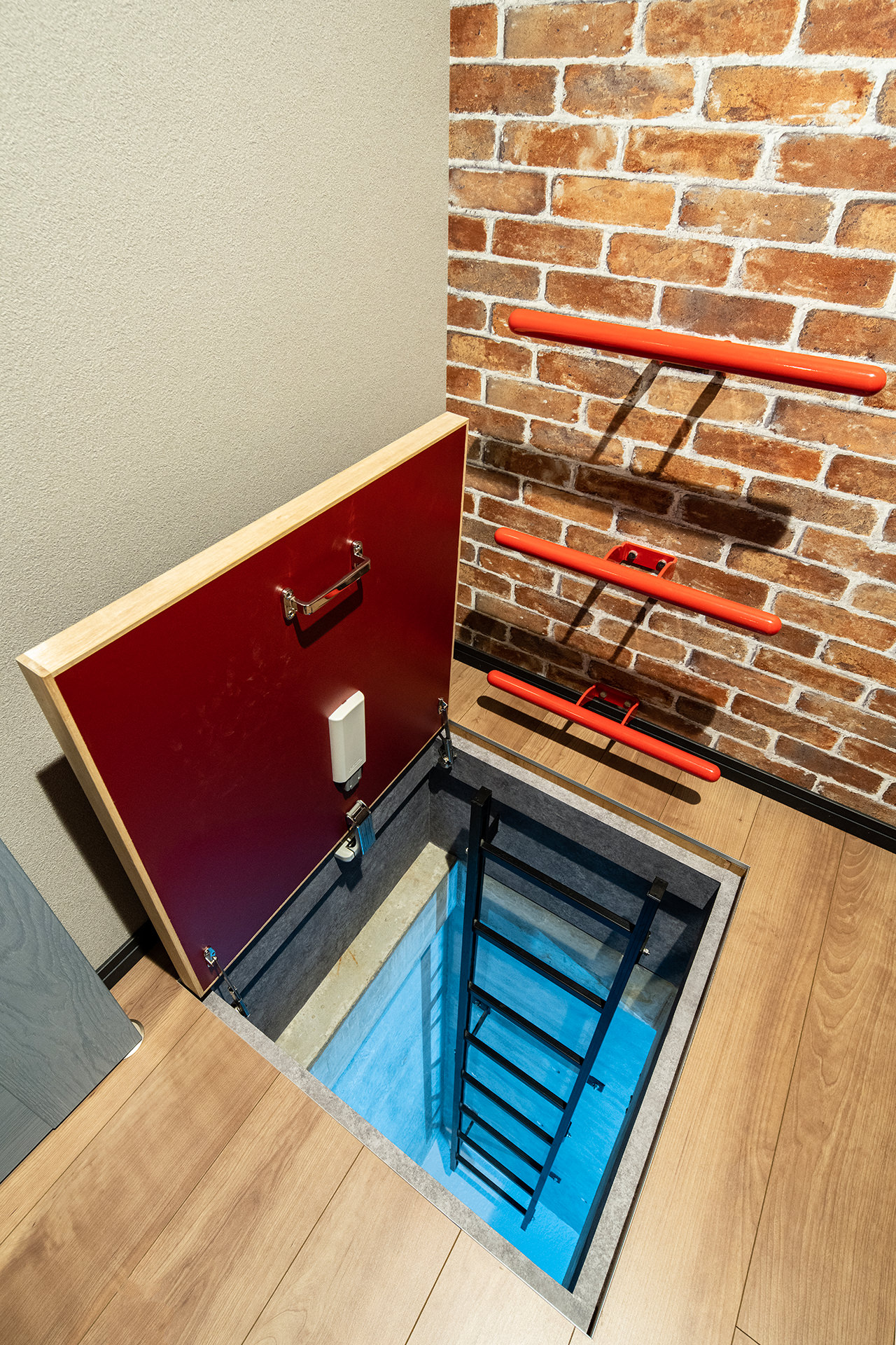 ガレージからは、はしごを登って1階の居室へ直接アクセスもできます。
