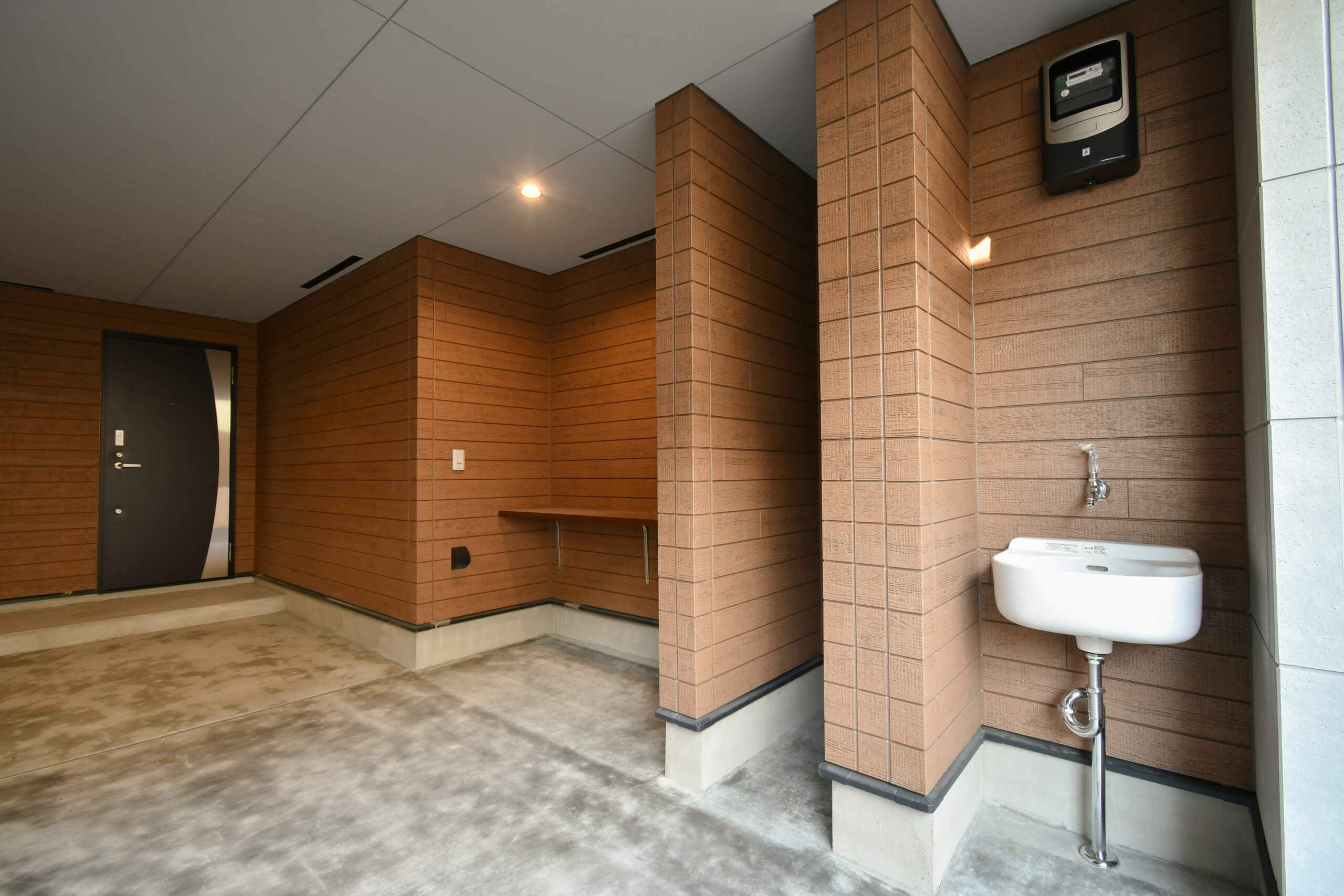 東京都西東京市のガレージ付きアパート タグ: ▶建築面積:231.07㎡ ▶延床面積:641.84㎡ ▶居室数 :6部屋(ガレージ付) ▶タイプ :ガレージ付3階建て木造アパート(メゾネット) 東京都西東京市にあるガレージ付き三階建て、メゾネットタイプアパートの設計・施工を行いました。各居室に1台駐車可能なガレージをつくり、その奥に玄関を配置。ガレージは広くアウトドアグッズの置き場としても活躍しそうです。また、車で帰宅しても雨に濡れることなく室内に入ることができます。 シックなフローリングでまとめた室内にはたっぷりの光が差し込み、メゾネットタイプのため足音などが気になりません。 共有:TwitterFacebook