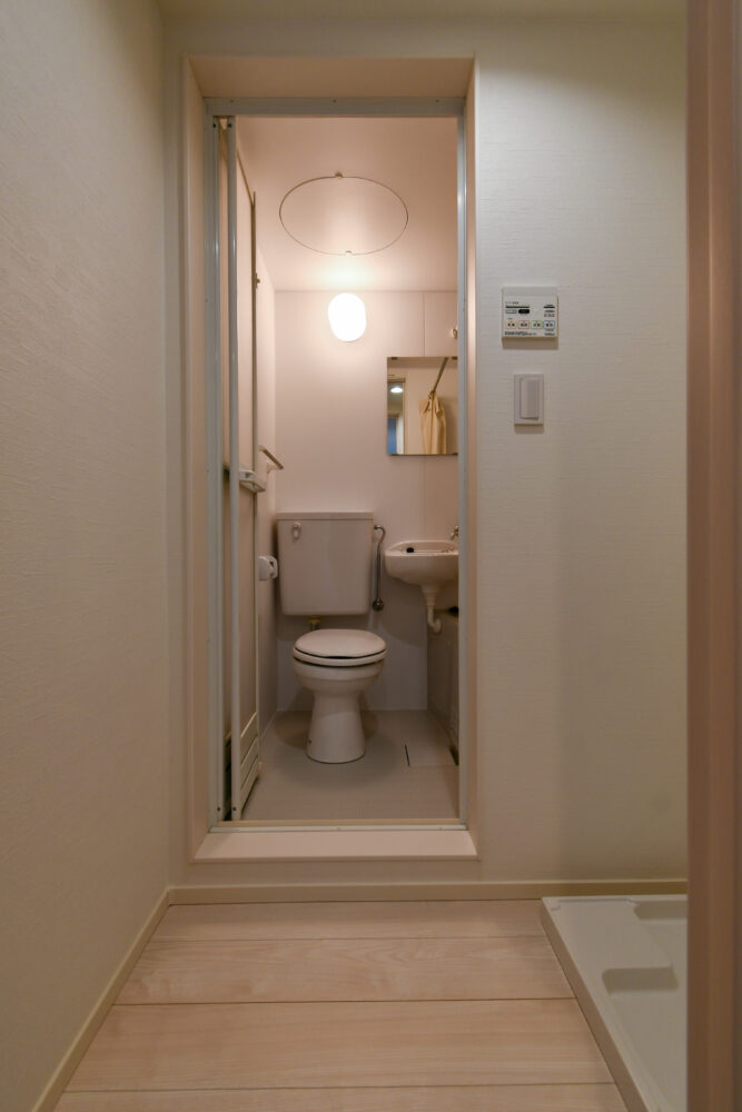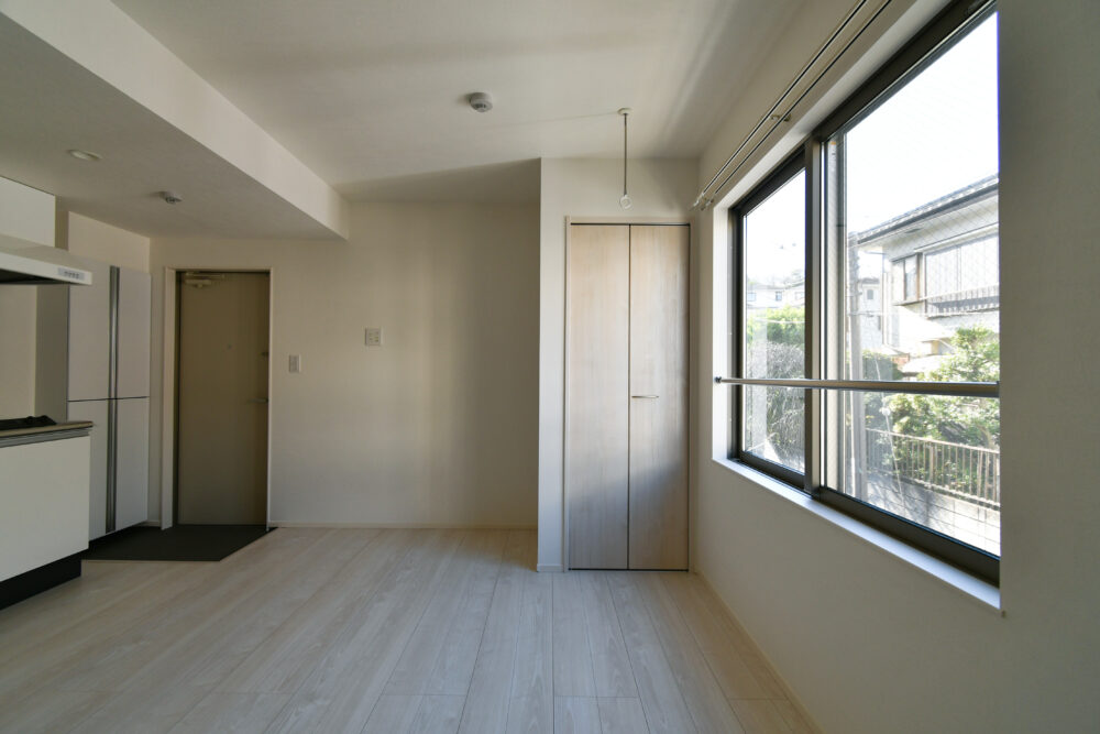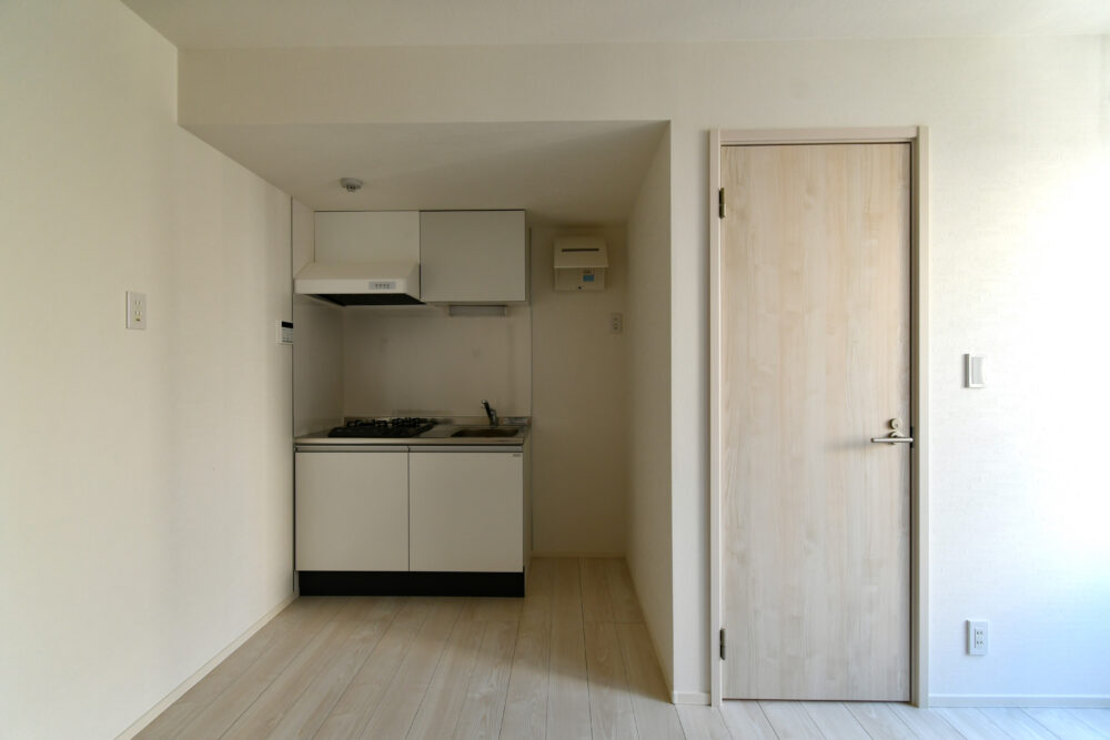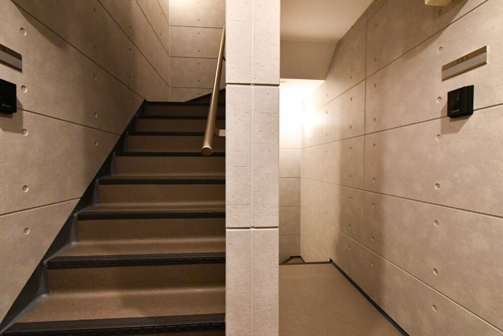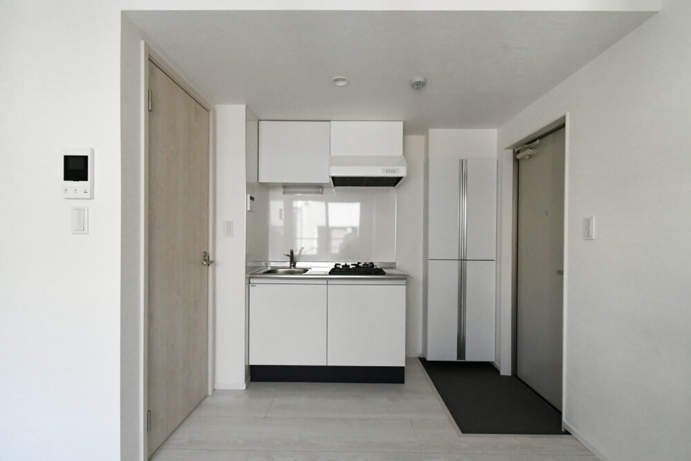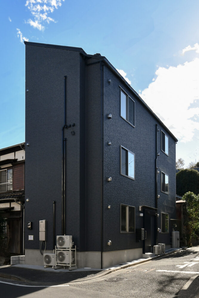 横浜市の中心地からほど近い、住宅街に佇む本アパートは、黒のシック外観にブルーのオートロックドアを採用。狭い敷地でもオートロック付き、かつできるだけ居室を広くできるようドアや間取りに工夫を加えています。内装はホワイトを基調としたさわやかな空間で、住む人が安心して快適に過ごせるアパートが完成しました。