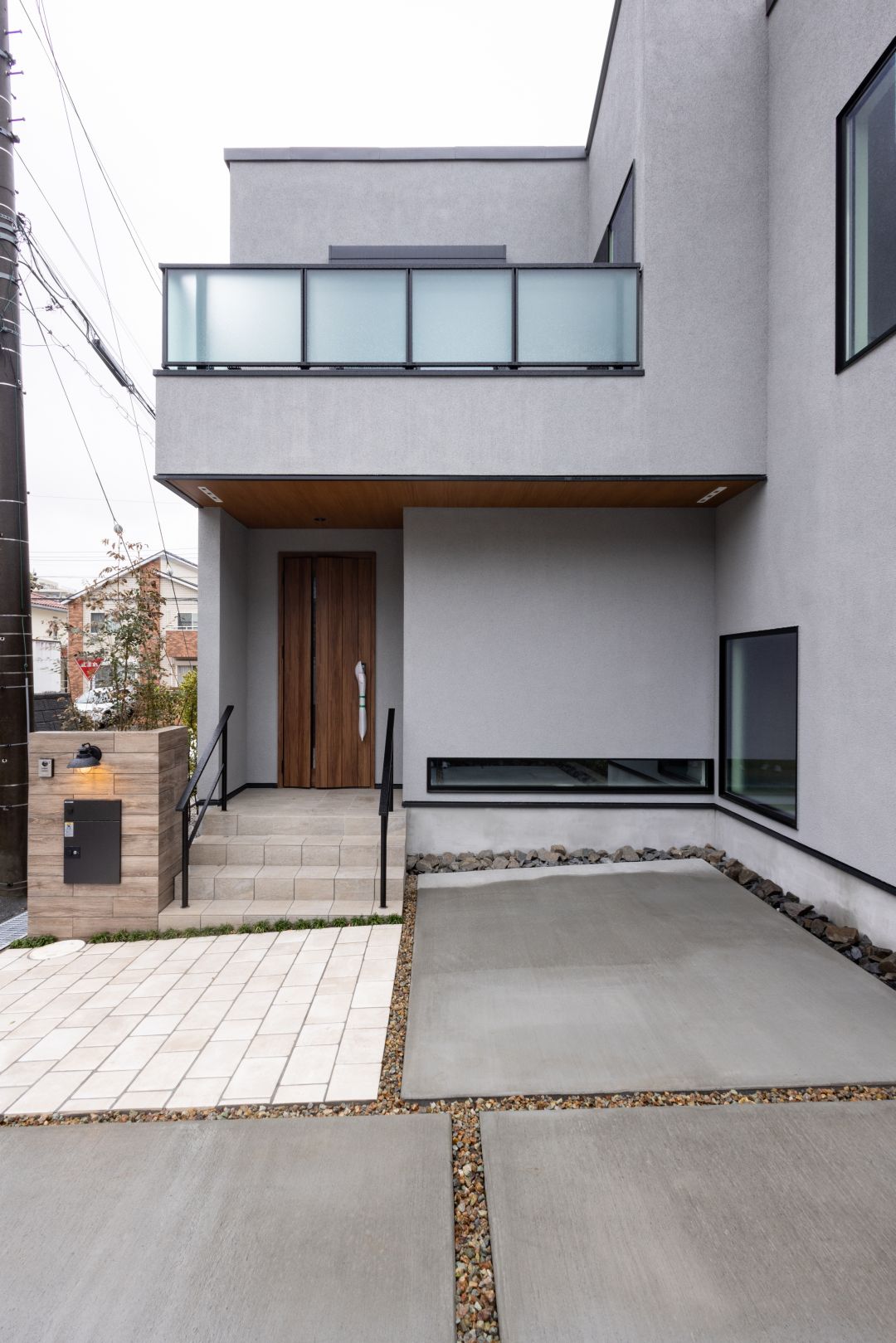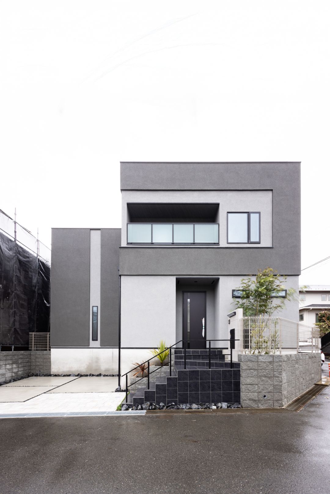 B棟・外観/グレーの外壁とブラックのフレームが、モダンで洗練された印象の外観
