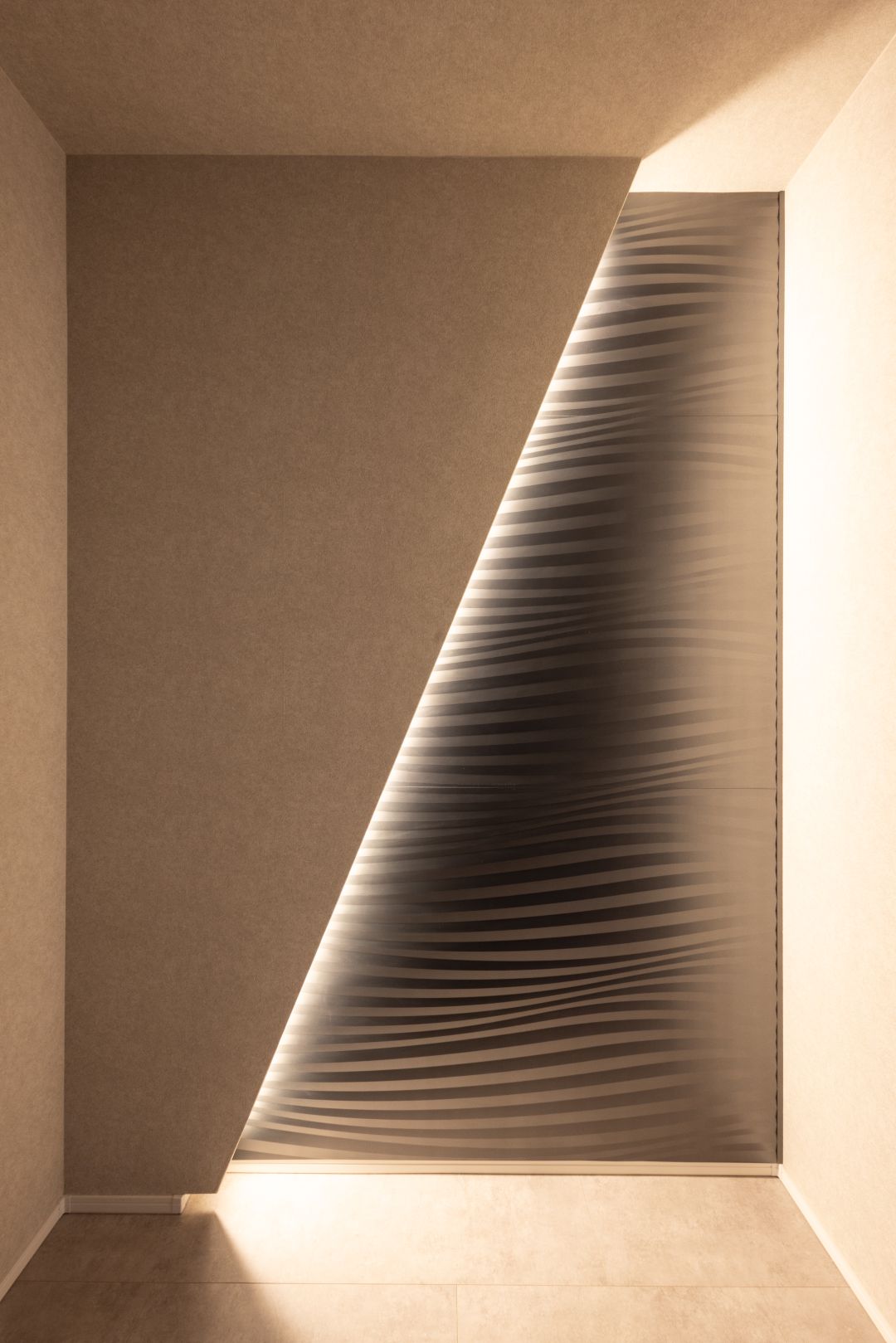 A棟・玄関ホール/玄関ホール正面の壁の間接照明
