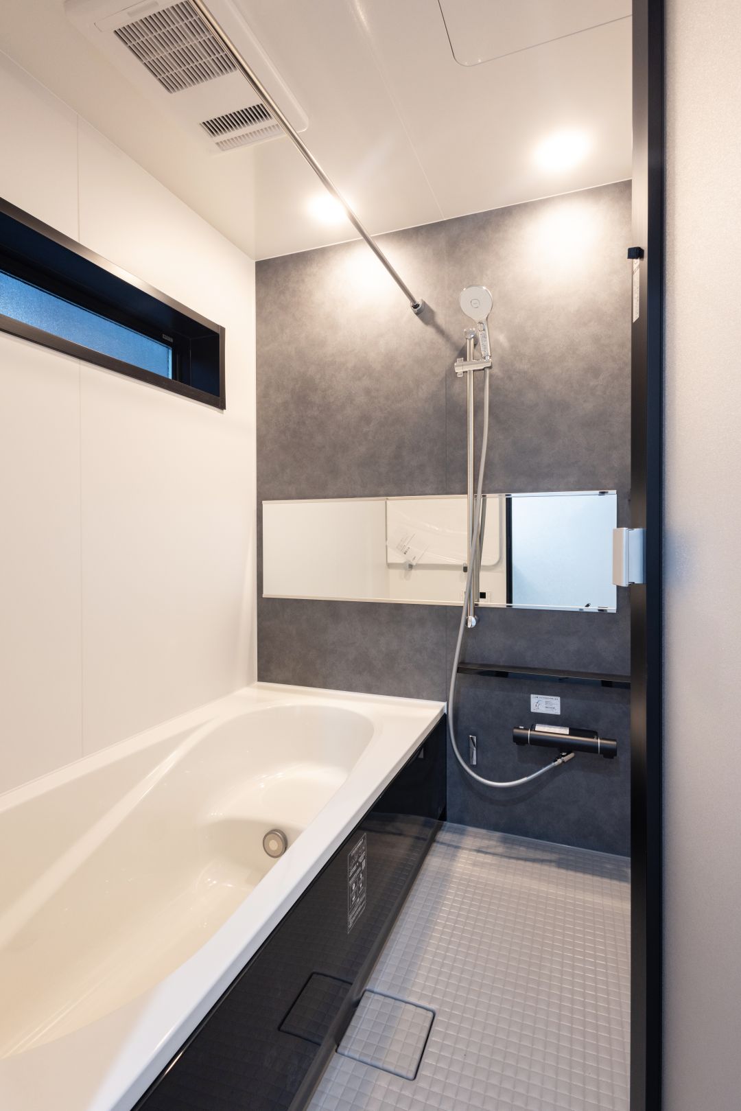A棟・浴室/コンセプトカラーのモノトーンでまとめたバスルーム