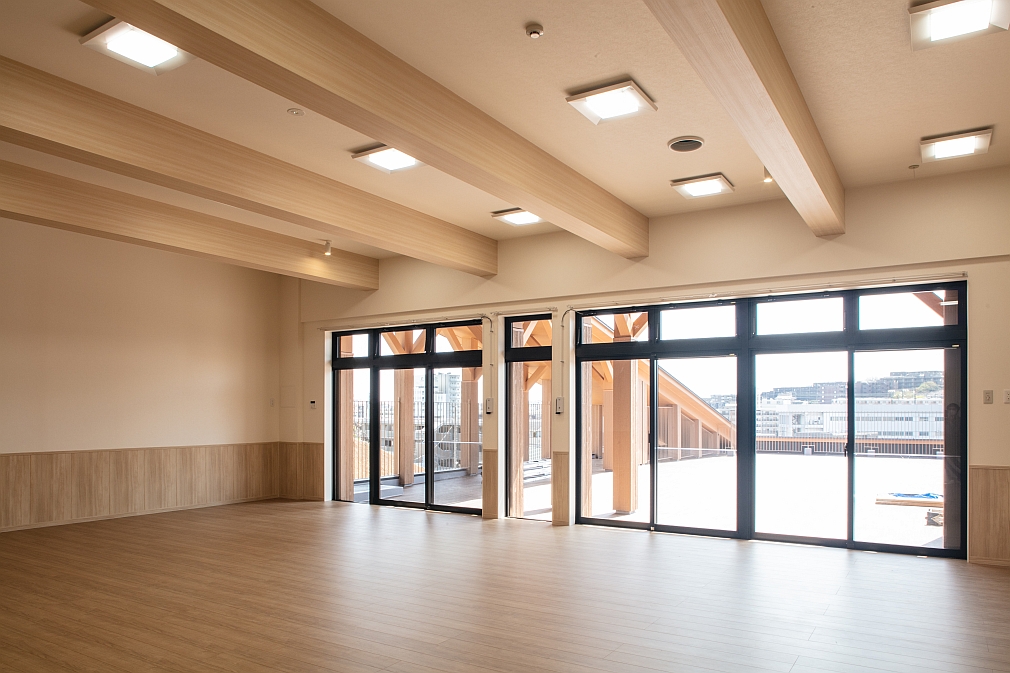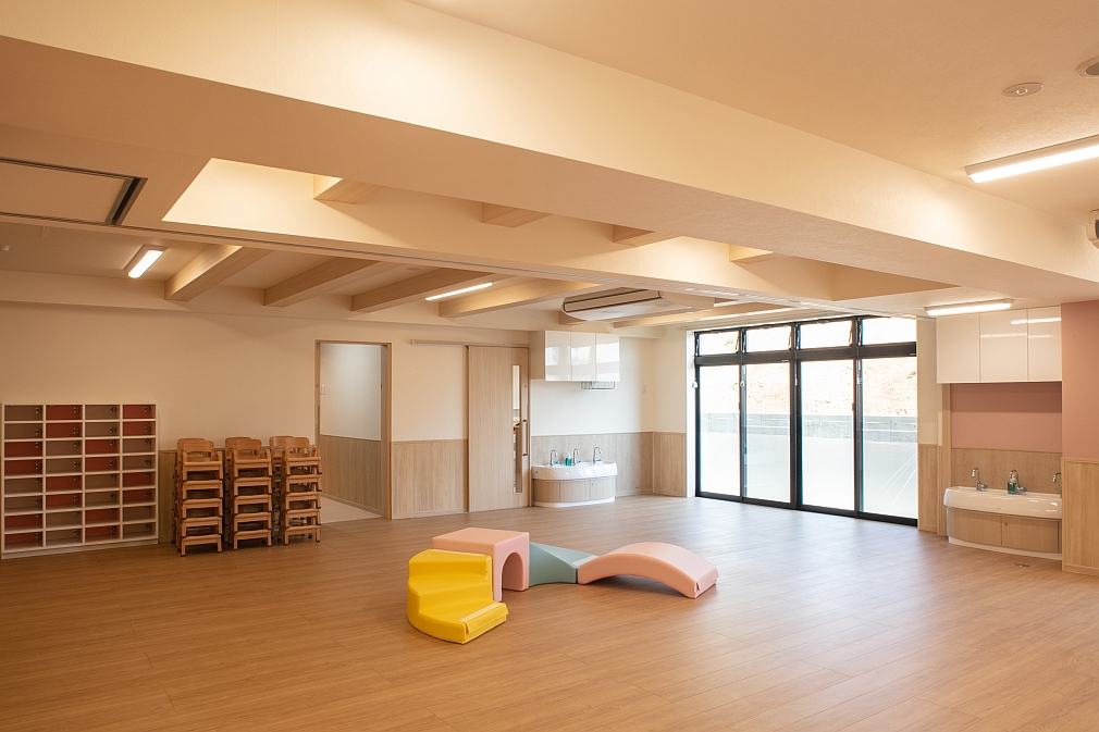 神奈川県川崎市宮前区の「土橋宝翆保育園」様を建築施工いたしました。地上2階地下1階建て。延床面積1080.27㎡(326.78坪)の超大型の木造建築です。